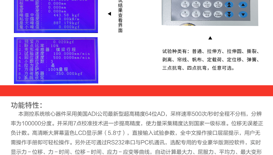 本系列機廣泛用于各類薄膜、五金、橡膠料、紡織、建材、絕緣體、電線、電纜、端子等各類材料。測試其拉伸、撕裂、穿刺、剝離、抗壓、彎曲、抗剪切、定荷重、定位移、三點抗折等試驗...