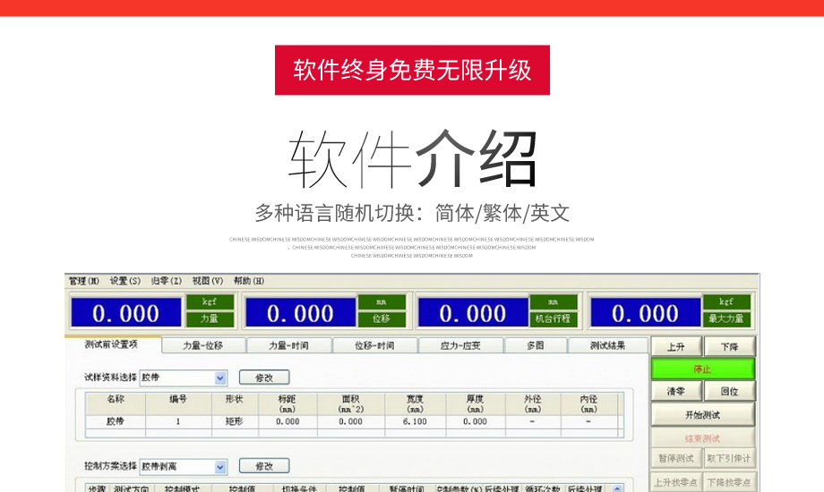本系列機(jī)廣泛用于各類薄膜、五金、橡膠料、紡織、建材、絕緣體、電線、電纜、端子等各類材料。測(cè)試其拉伸、撕裂、穿刺、剝離、抗壓、彎曲、抗剪切、定荷重、定位移、三點(diǎn)抗折...